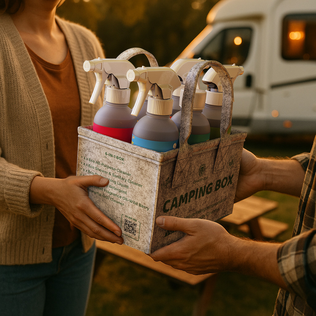 Includes 2 x 6 specialized Greenhugo cleaning products, tailored specifically to the needs of Vans and camping enthusiasts. The set also comes with 2 high-quality reusable practical felt bags and 2 special microfiber cloths.